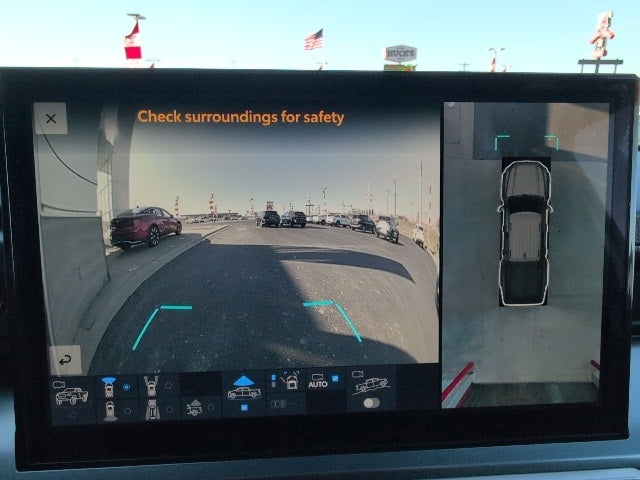 38. The Panoramic View Monitor does not provide a comprehensive view of the area surrounding your vehicle. Look around to confirm clearance. See Owner’s Manual for limitations.