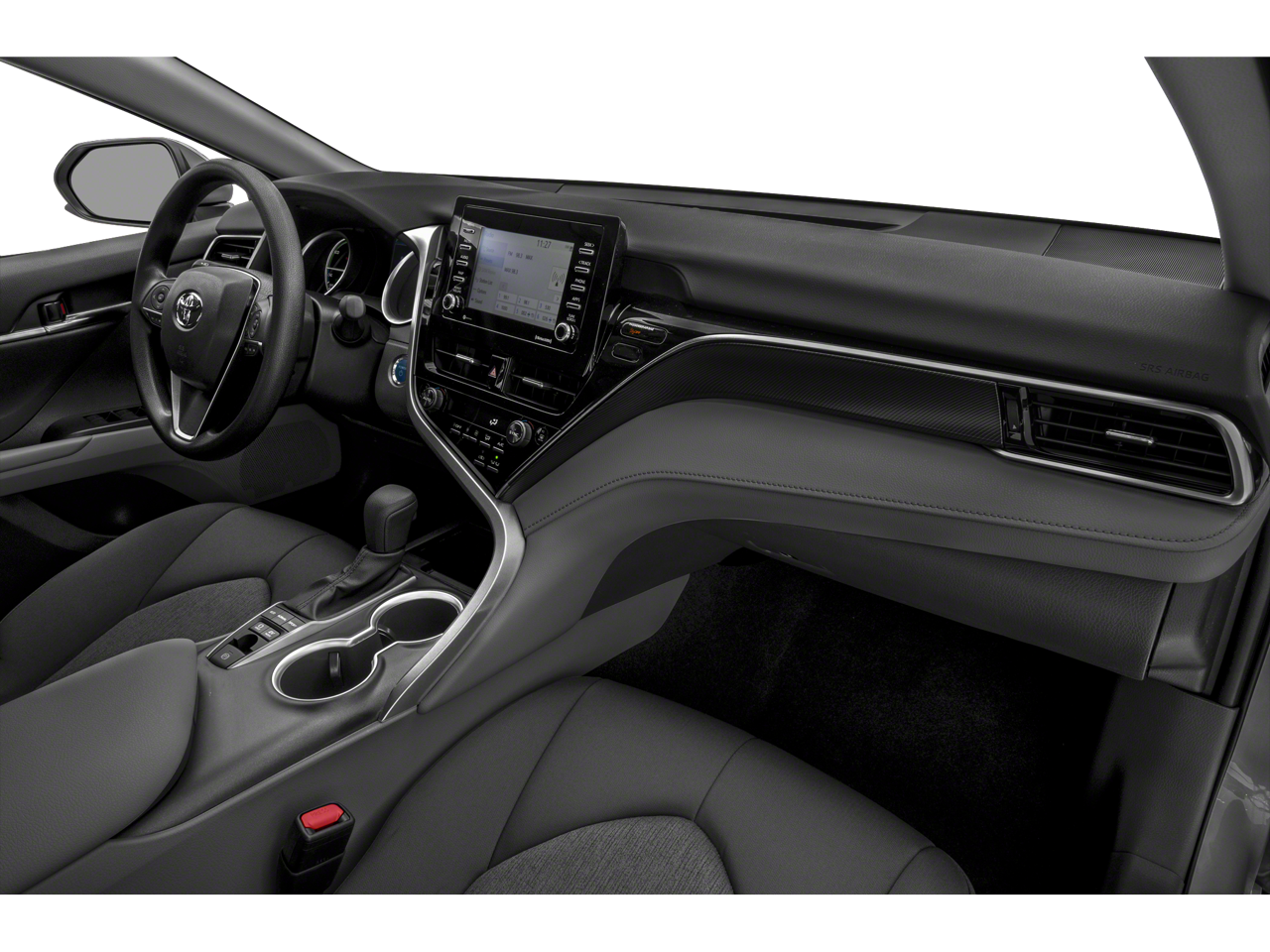 Comfort and convenience are paramount in this well-appointed Camry. The spacious cabin features perforated leather seating, heated front buckets, and a power tilt/slide moonroof, elevating every journey. Stay connected with the intuitive 9-inch touchscreen display, featuring dynamic navigation, Android Auto, Apple CarPlay, and a premium JBL audio system.