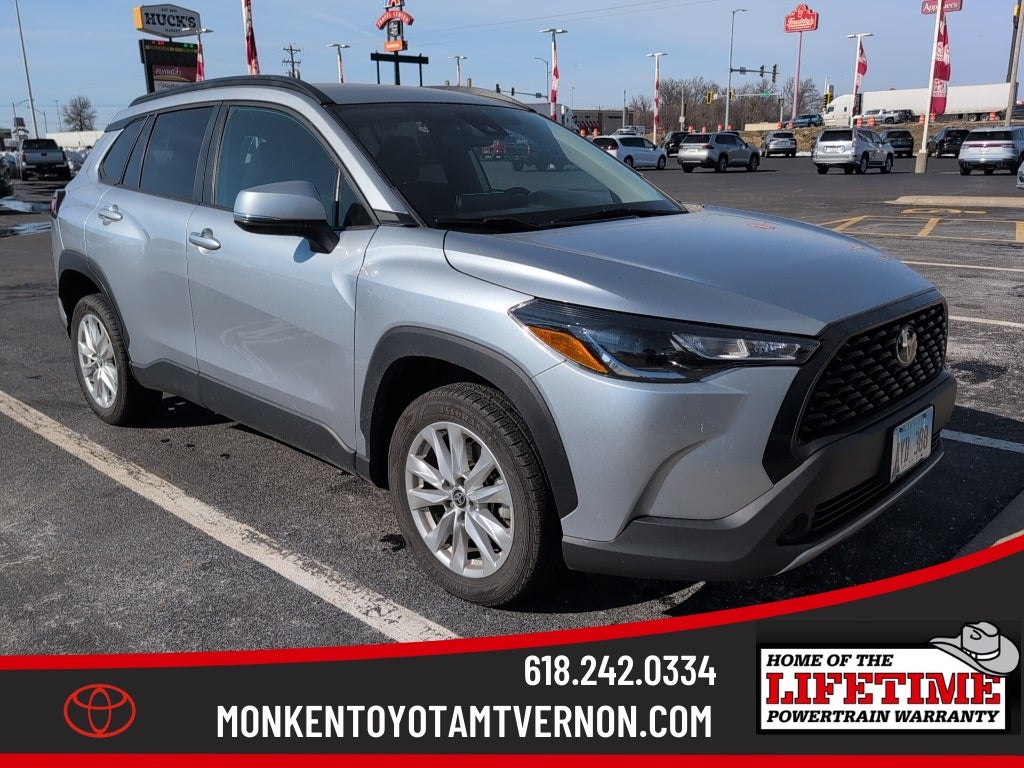 Research the 2022 Toyota Corolla Cross at Monken Toyota of Mt. Vernon of Mt Vernon. Here are pictures, specs, and pricing for the 2022 Toyota Corolla Cross 4D Sport Utility LE located in Mt Vernon. You can call our Mt Vernon, IL location, serving Mt.Vernon, IL, Centralia, IL, St. Louis, IL, Marion, IL to inquire about the 2022 Toyota Corolla Cross 4D Sport Utility LE or another 2022 Toyota Corolla Cross 4D Sport Utility LE.