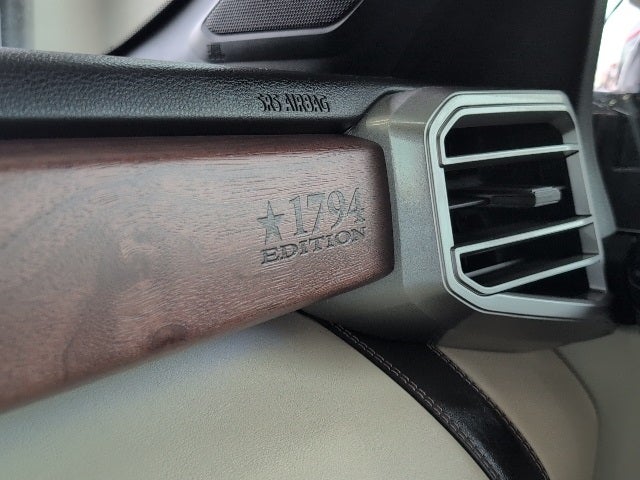 10-Way Pwr Adj Heated and Ventilated Front Seats, 12 Speakers, 1794 Grade Package, 3.31 Axle Ratio, 4-Wheel Disc Brakes, ABS brakes, Advanced Package, Air Conditioning, Alloy wheels, AM/FM radio: SiriusXM, Apple CarPlay/Android Auto, Auto High-beam Headlights, Auto-dimming door mirrors, Auto-dimming Rear-View mirror, Automatic temperature control, Black Tailgate Insert (TMS), Blind Spot Monitor, Brake assist, Bumpers: body-color, Chrome Plated Power Folding Outside Mirrors, Color Head Up Display, Delay-off headlights, Driver door bin, Driver vanity mirror, Dual front impact airbags, Dual front side impact airbags, Electronic Stability Control, Emergency communication system: Safety Connect with 1-year trial, Front anti-roll bar, Front Bucket Seats, Front Center Armrest, Front dual zone A/C, Front fog lights, Front reading lights, Front wheel independent suspension, Fully automatic headlights, Garage door transmitter: HomeLink, Heated door mirrors, Heated front seats, Heated rear seats, Heated steering wheel, Illuminated entry, Knee airbag, Leather Seat Trim, Leather Shift Knob, Low tire pressure warning, Memory seat, Multi-Terrain Back Monitor, Navigation System, Occupant sensing airbag, Outside temperature display, Overhead airbag, Overhead console, Panic alarm, Panoramic View Back Monitor, Passenger door bin, Passenger vanity mirror, Power door mirrors, Power driver seat, Power moonroof, Power passenger seat, Power Running Boards, Power steering, Power windows, Radio data system, Radio: Audio Multimedia System, Rain sensing wipers, Rear reading lights, Rear seat center armrest, Rear step bumper, Rear window defroster, Remote keyless entry, Safety Connect, Security system, Speed control, Speed-sensing steering, Split folding rear seat, Steering wheel memory, Steering wheel mounted audio controls, Tachometer, Telescoping steering wheel, Tilt steering wheel, Traction control, Trip computer, Turn signal indicator mirrors, Variably intermittent wipers, Ventilated front seats, Ventilated rear seats, Voltmeter, Wheels: 20 Machined Finish Alloy.